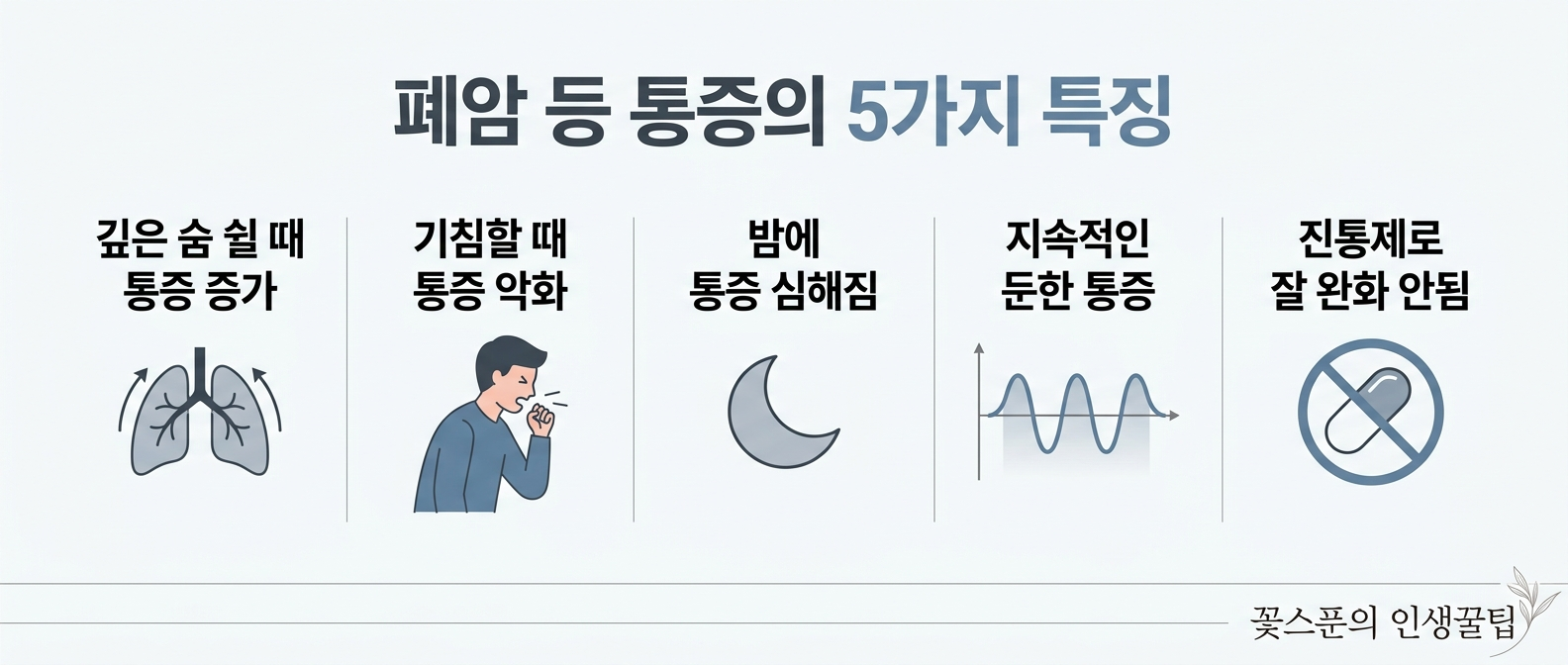 등이 아프면 대부분은 근육통이나 척추 문제를 먼저 생각합니다. 하지만 일부 폐 질환에서도 등 통증이 나타날 수 있습니다. 특히 폐 뒤쪽에 위치한 병변은 등이나 어깨 사이 통증으로 느껴질 수 있습니다. 다만 중요한 점은 대부분의 등 통증은 폐암이 아니라 근육통이라는 것입니다. 그래도 다음과 같은 특징이 있다면 폐 질환 가능성을 확인해 볼 필요가 있습니다.