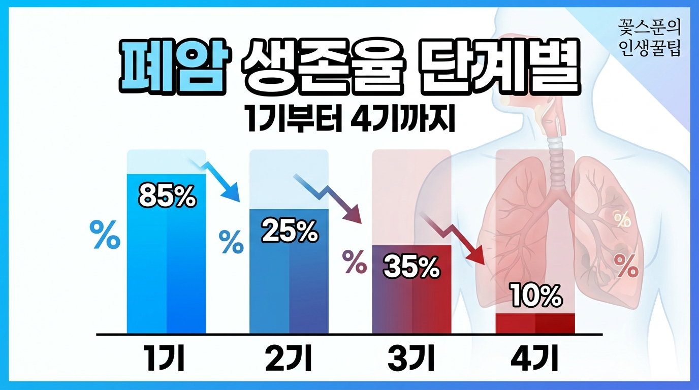 폐암 생존율은 “암이 어디까지 퍼졌는지(병기/전이 범위)”에 따라 차이가 큽니다. 그래서 1기(국한)와 4기(원격 전이)는 치료 전략도, 예후도 완전히 달라집니다. 이 글은 공신력 통계(ACS·NCI/SEER)를 기준으로 “단계별 생존율을 어떻게 읽어야 하는지”까지 정리합니다.