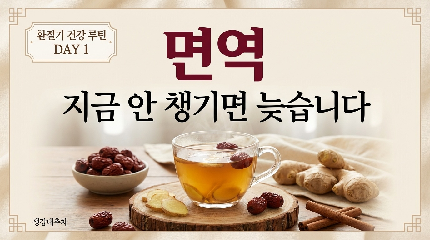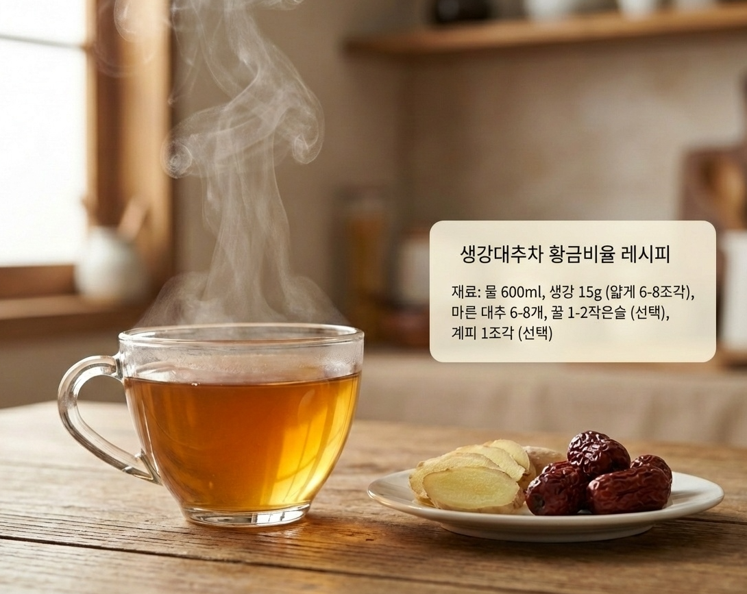 환절기에는 일교차가 커지면서 몸이 쉽게 피로해지고, 목이 먼저 칼칼해지는 경우가 많습니다. 이럴 때 가장 간단하게 실천할 수 있는 방법이 바로 생강대추차입니다.