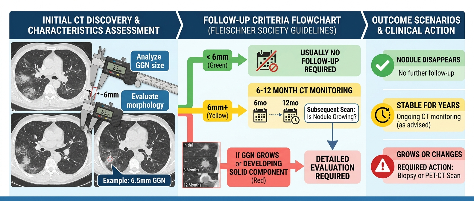 폐 결절 관리에서 가장 많이 사용되는 기준은 Fleischner Society 가이드라인입니다.