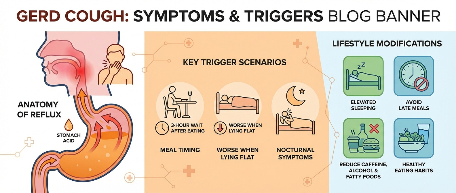 역류성 식도염 기침(GERD cough)은 속쓰림 없이도 발생할 수 있습니다. 식후 악화되는 마른기침, 누우면 심해지는 증상, 후비루·천식과의 차이, 치료 방법과 병원 방문 기준까지 한눈에 정리했습니다.
