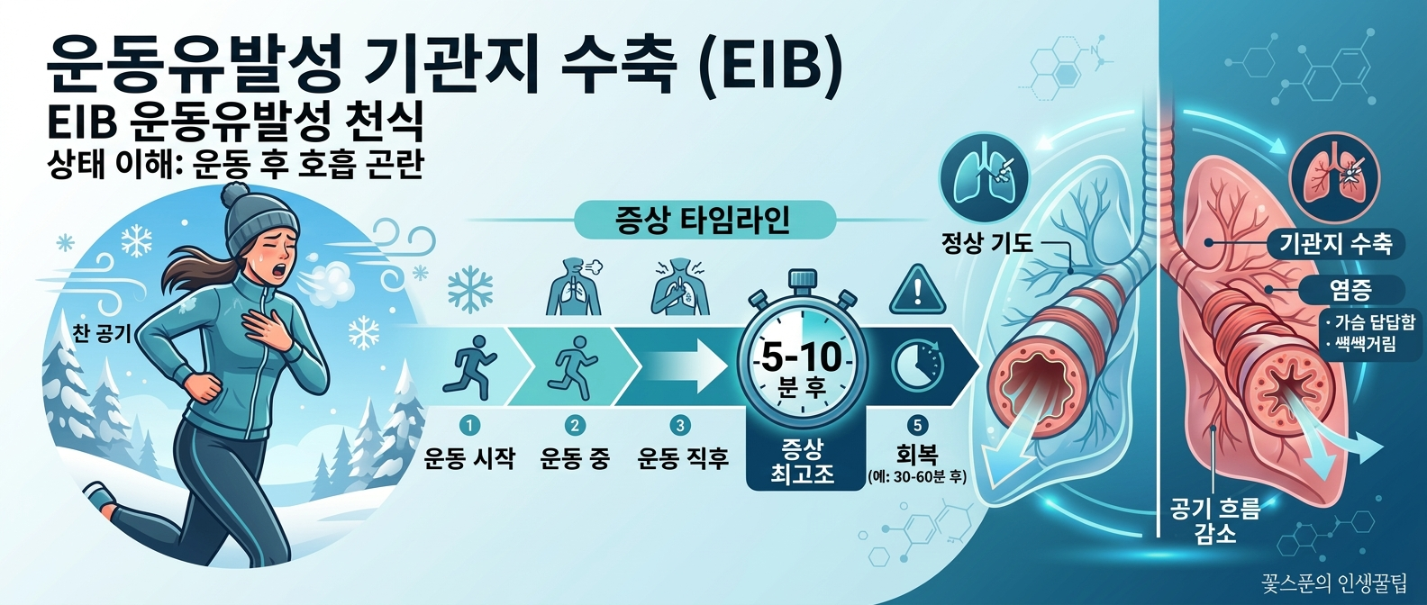 ✅ 운동유발성 천식(EIB): 운동 중~직후 또는 5~10분 뒤 기침/쌕쌕/답답함이 집중적으로 악화